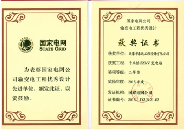 “國網評優(yōu)”是國家電網公司為了加強設計管理,推動設計理念和方法創(chuàng)新、提高工程設計質量,根據《國家電網公司輸變電工程優(yōu)秀設計評選管理辦法》,組織開展的年度優(yōu)秀設計評選工作。本年度的評選工作得到了各網省院的積極參與,共有240項工程參加優(yōu)秀設計評選,根據評分結果和專家意見,最終共授予100項工程優(yōu)秀設計獎,其中,一等獎17項,二等獎33項,三等獎50項。我公司完成的“千米橋220kV變電站”設計,在國網天津市電力公司的大力推薦下,通過評選榮獲了本年度二等獎。